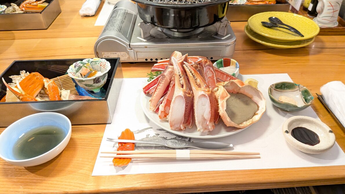 夕食はカニ尽くし。17時半開始でも食べ終わるのに時間がかかり、部屋に戻ったのは20時頃。