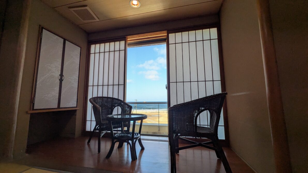 日本海を臨む部屋 海を眺めるよりもテレビ接続を優先していた私(笑)