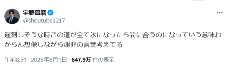 宇野昌磨さんの投稿が、X(Twitter)上で“本日のニュース”最上位にまたも2日連続でランクインしています。最近はほぼ全投稿が万バズ、評判を呼んだ投稿は1000万表示を軽く超える状態。