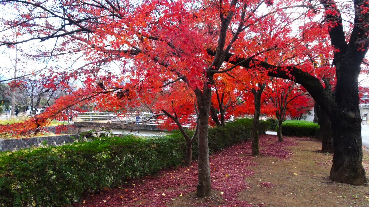 小瀬スポーツ公園内は紅葉が見ごろで、並木道を散歩するのも楽しいです。