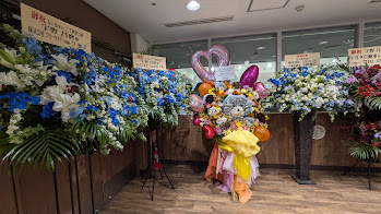 最後の公演とあって、フラワースタンドも多数並べられていました。宇野家がお世話になっている動物病院からのフラワースタンドは飼い犬のエマちゃんたちをイメージしたデザインがとても凝っていて目立っていました。