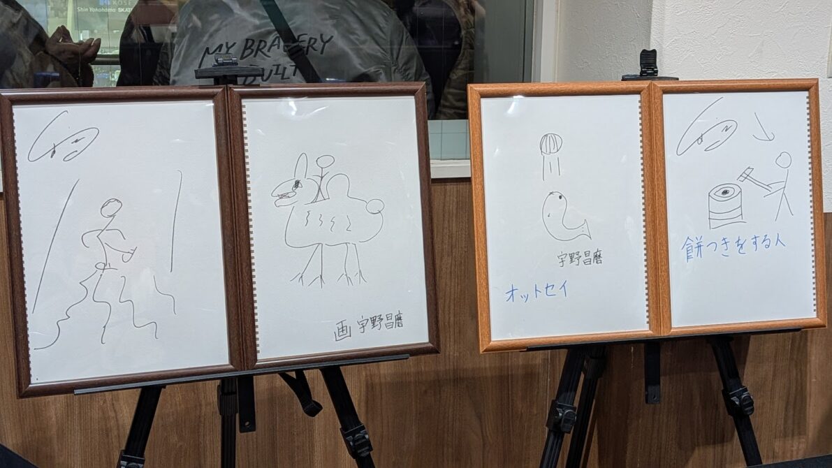 一角には、TBSフィギュアのPR企画で4回描いた「お絵描きチャレンジ」の作品の展示も。解答の文字が直筆で加わってるのが何とも味わい深いです(笑)。