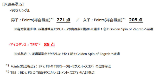 日本スケート連盟は9/14に、ミラノ五輪ミニマムスコアを持っていない選手をゴールデンスピン杯に派遣する際の基準を発表しました。